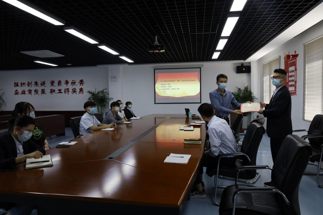 随后,团支部委员王怡欣宣读2021年度公司“优秀共青团员”、“优秀共青团干”“五四青年”名单,党支部委员郑迎广向获得荣誉的同事颁发证书。