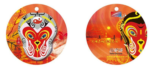 猴年生肖卡与以前的“tyc5997太阳集团首页”卡相比,外形独特,小巧美观,携带方便,卡片主色调选取温暖热情的橘红色,并融入生肖脸谱、巢湖渔舟唱晚等合肥地域性元素,使卡片具有一定的收藏纪念价值。
