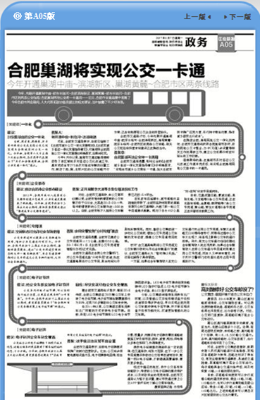 答复B: 合肥巢湖两地公交将一卡通用